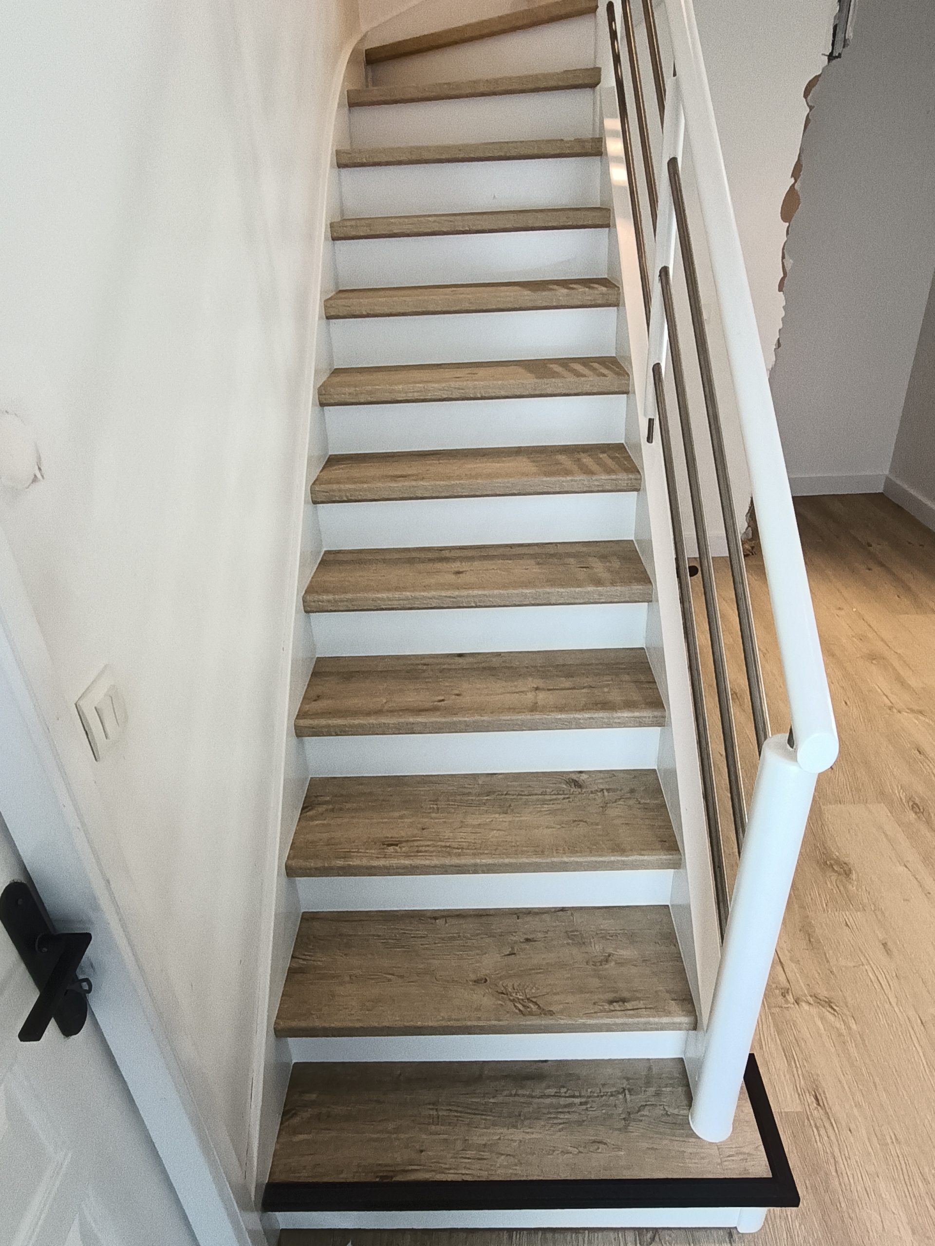 Rénovation d’escaliers existants par recouvrement en parquet, une solution esthétique et durable pour moderniser un escalier sans avoir à engager de gros travaux.